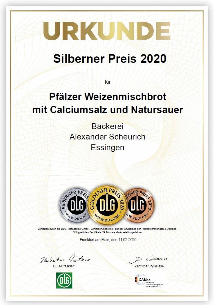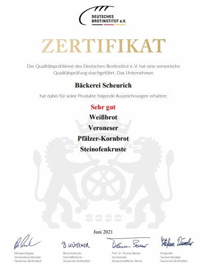 Des Weiteren wurden wir 2019 und 2021 als 1. von 18 Betrieben in Rheinland Pfalz, mit dem "Landesehrenpreis des Bäckerhandwerkes in Rheinland Pfalz" ausgezeichnet.